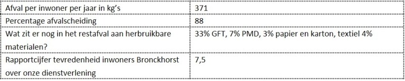 De gemeente Bronckhorst kwam in 2021 als koploper uit de bus bij de jaarlijkse Benchmark. Dit landelijke vergelijkingsonderzoek naar huishoudelijk afval wordt jaarlijks georganiseerd door de NVRD en Rijkswaterstaat. Bronckhorst haalde het beste milieuresultaat met een hoog afvalscheidingspercentage en weinig restafval. Ook viel Bronckhorst op door een hoge service en lagere afvalkosten dan de gemiddelde gemeente.
