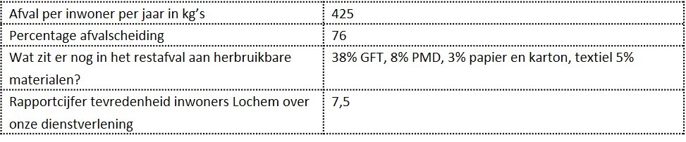 In 2021 werd in de gemeente Lochem gestart met de implementatie van het Afval en Grondstoffenplan 2021-2025. Ruim 1.000 inwoners dachten mee aan het plan via het inwonerpanel 'Lochem Spreekt'. Het plan werd eind 2020 vastgesteld door de gemeenteraad van Lochem. Goede afvalscheiding en het verminderen van het milieubelastende restafval blijven speerpunten. Maar ook wordt goed op de kosten gelet.