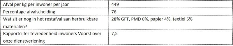 De inwoners van de gemeente Voorst blijven koploper in het werkgebied van Circulus als het gaat om het de hoeveelheid aangeboden GFT. Er werd met ruim 213 kg per inwoner per jaar ook in 2021 relatief veel GFT ingezameld. De stijging uit 2020 is in 2021 niet doorgezet; het coronaeffect waarbij veel thuis bereid en geconsumeerd werd is in 2021 afgevlakt.