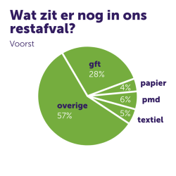 Voorst laat de laatste vier jaar een vrij constant scheidingspercentage zien met 76% in 2021. Er is nog winst te boeken: in het restafval zien we nog altijd een flink aandeel grondstoffen, vooral GFT en in mindere mate PMD, textiel en papier. Andersom trouwens ook: in PMD en GFT zien we afval dat elders hoort. De komende jaren zal kwaliteit van grondstoffen aandacht vragen.