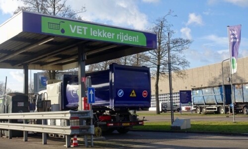 Dat staat te lezen op ons eigen tankstation op het recycleplein in Apeldoorn. Voortaan tanken onze chauffeurs daar HVO100, in plaats van dieselolie. Een synthetische dieselvervanger, gemaakt van plantaardige olie. Schoner en met een lagere uitstoot van CO2. De producent gebruikt daarvoor olie uit de voedingsmiddelenindustrie dat in het afvalstadium is beland. Het is een grote stap in de verduurzaming van het wagenpark.
